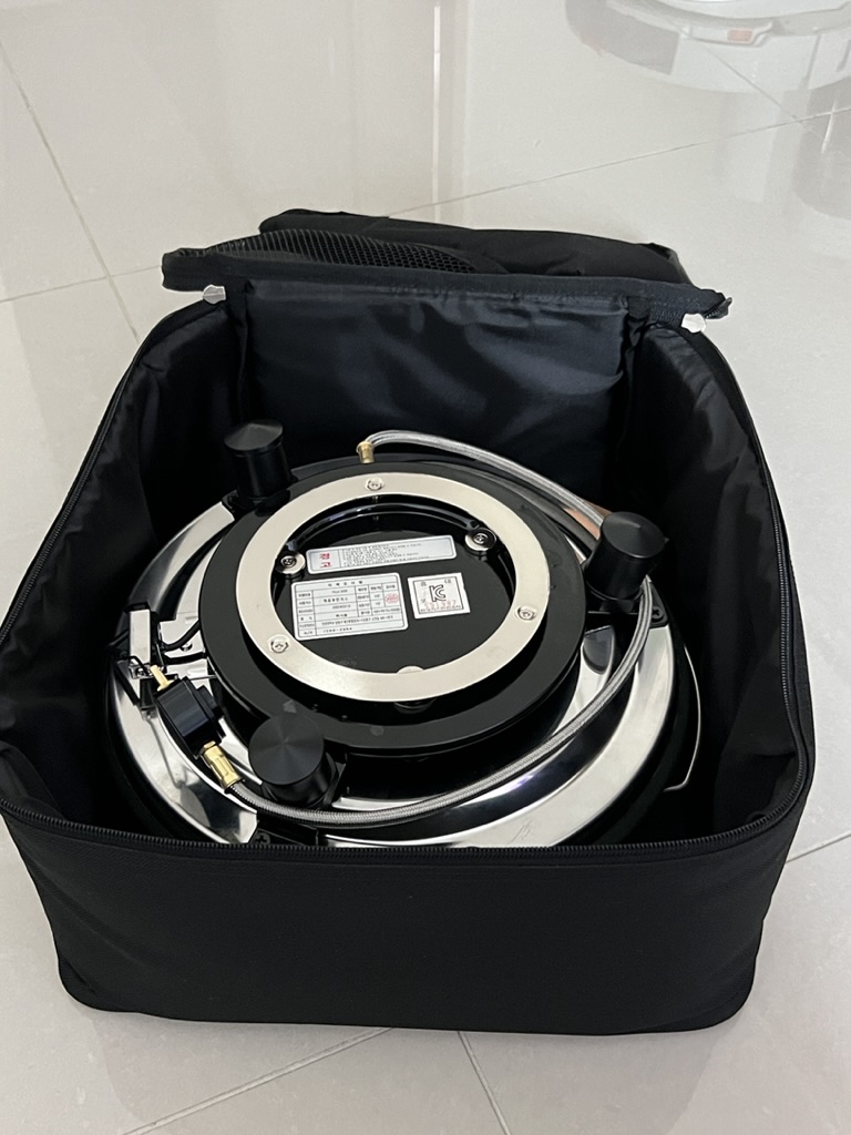 별매로 구매한 가방에는 가변현 다리 뿐만 아니라 본체를 완벽하게 수납이 가능하도록 짜임새 있게 만들어져 있는 걸 볼 수 있었다. 살짝 타이트한 느낌이 들지만 제품을 가방 안에 넣으면 깔끔하게 보관이 가능하며 특히 캠핑장으로 이동할 때 버너를 외부로부터 보호되어 안정적인 사용이 가능했다. 이런 가방의 경우 보통은 퀼리티까 떨어지기 마련이었지만 지퍼의 만듦새나 재질적인 측면에서 무척 마음에 드는 가방이었다.