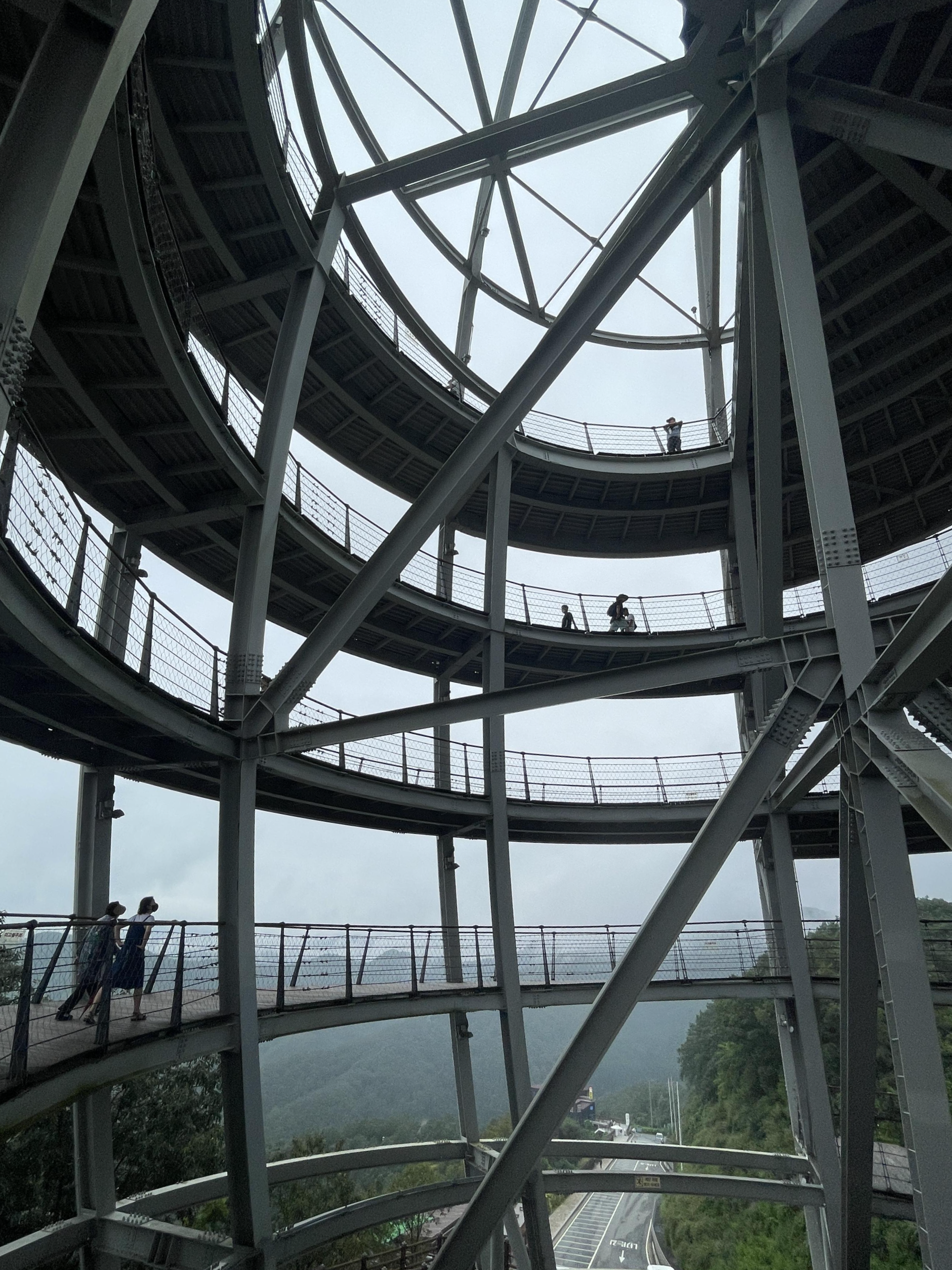 나무데크를 따라서 완만하게 계속 올라가다 보면 스카이워크 내부 길로 진입하게 된다. 빙글빙글 돌면서 올라가다 보면 크게 힘을 들이지 않고 평지를 걷는 듯이 걸으면서 정상까지 올라갈 수 있다.