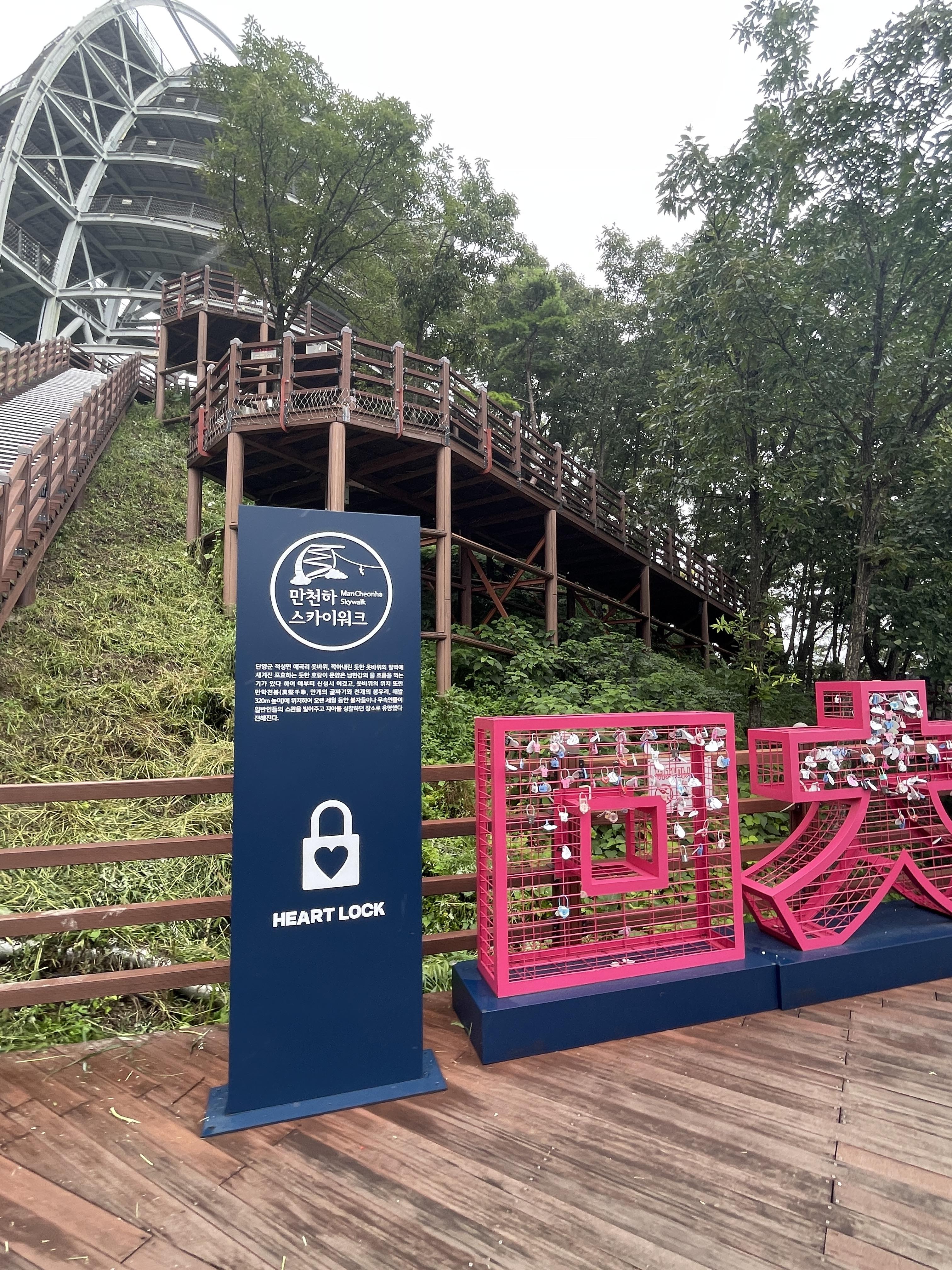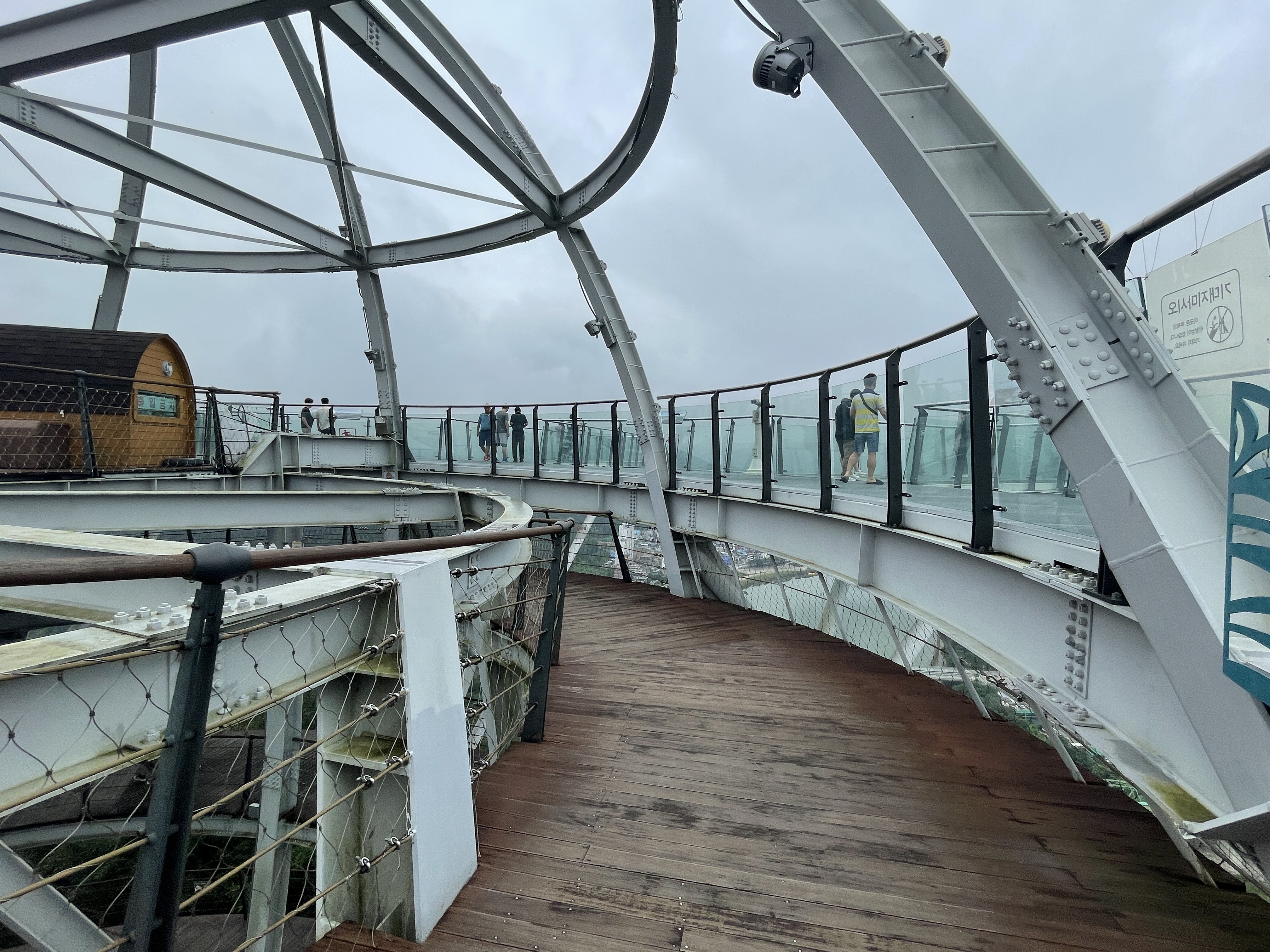 사람들이 줄지어서 전망대까지 오게 되면 흔들리거리는 스카이워크의 진동 때문에 고소공포증이 도져 서둘러 사진만 찍고 몸체에 있는 나무데크 쪽으로 돌아왔다. 이놈의 고소공포증은 언제쯤 나을 수 있을지..