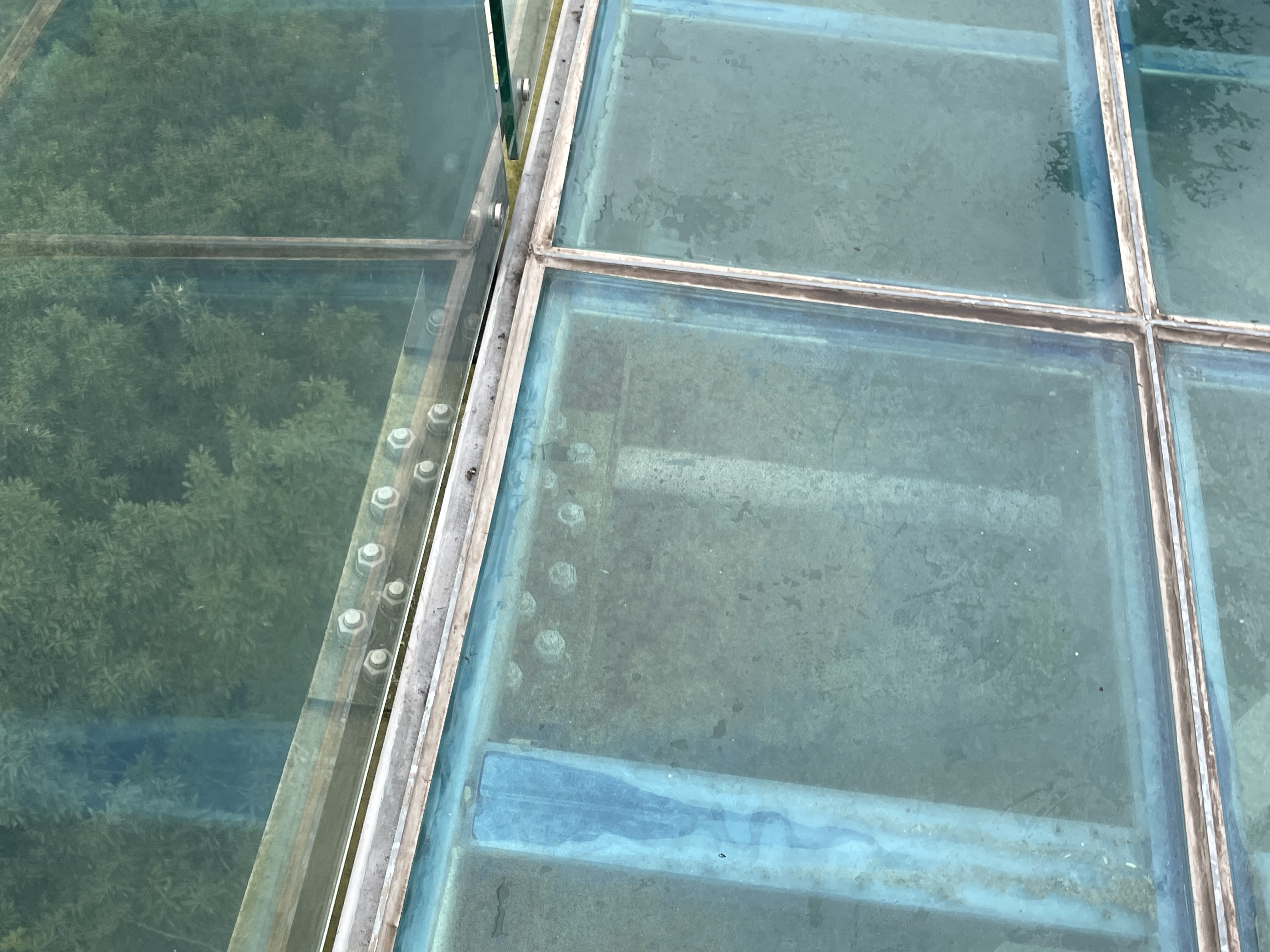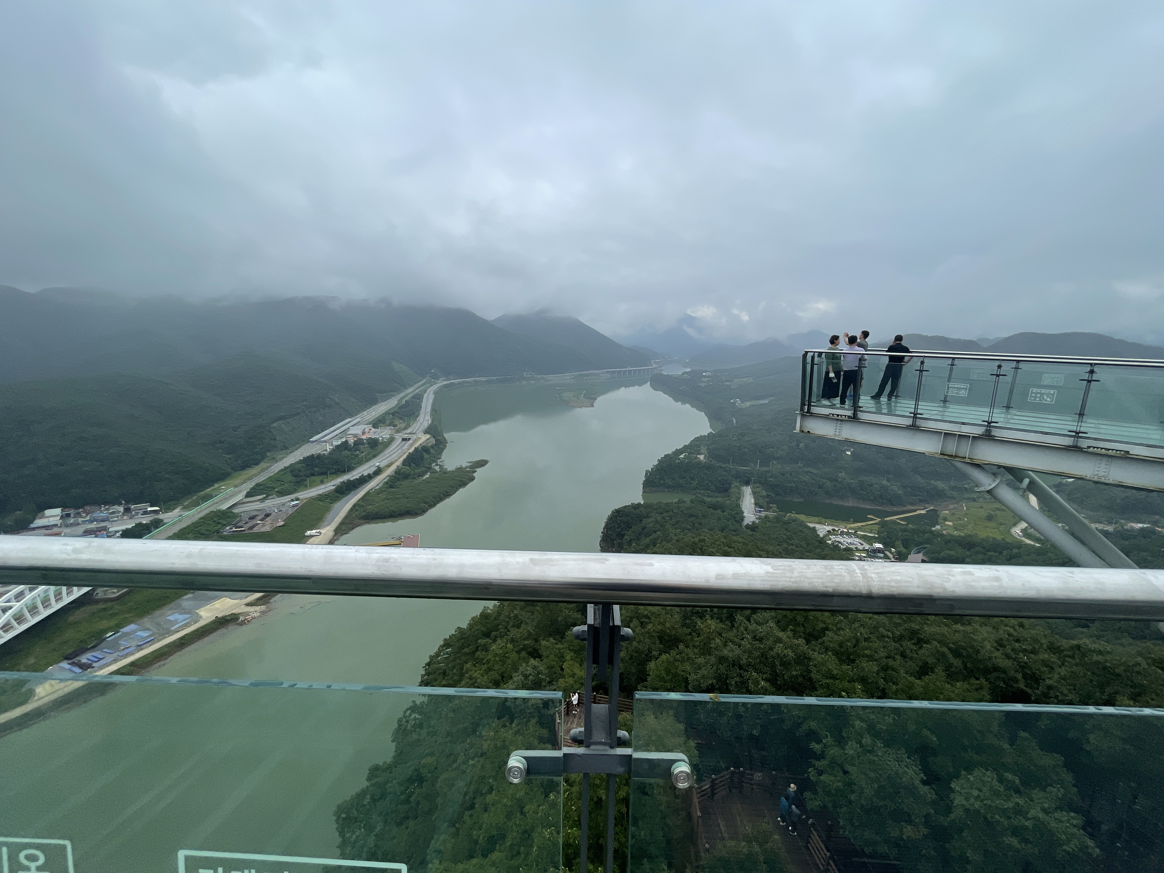 스카이워크의 둥근 몸체 끝자락에는 마치 손가락처럼 위의 사진처럼 생긴 튀어나온 전망대가 총 3개 붙어있다. 전망대의 끝까지 걸어가면 밑바닥이 적나라하게 드러나 보이는 강화유리가 나오게 되는데, 차라리 철로 만들어진 바닥이 오히려 더 나은 기분이 들 정도로 상당히 아찔해서 필자는 얼마 못 서 있다가 도망가기 바빴다.
