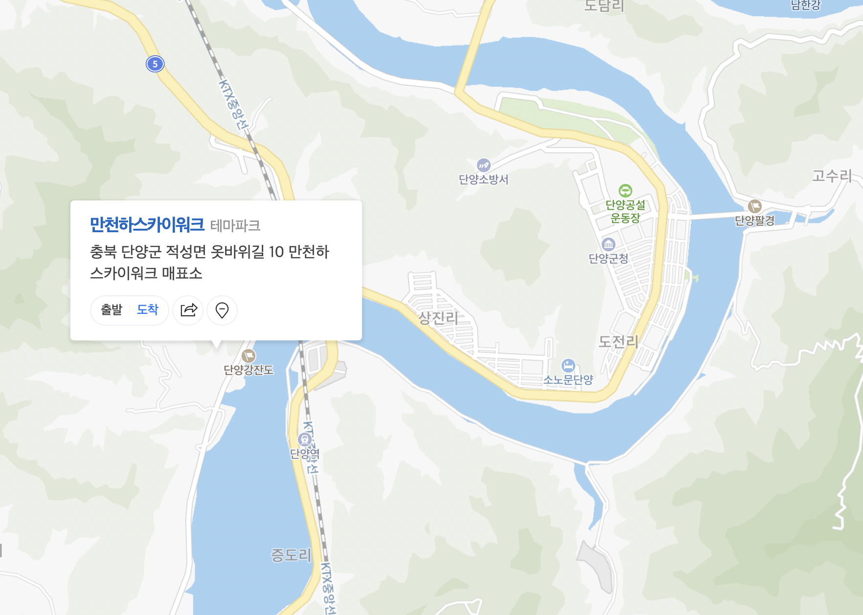 - 주소: 충북 단양군 적성면 옷바위길 10 만천하 스카이워크 매표소